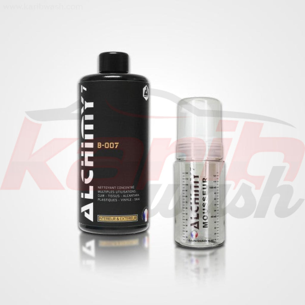 B-007 de la marque Alchimy est un nettoyant très concentré offrant de très nombreuses utilisations. Les différentes dilutions et types d'applications permettent de nettoyer de très nombreuses surfaces : Cuir, Tissus, Alcantara et même les Plastiques, le Vinyle, le Skaï, les Microfibres.
