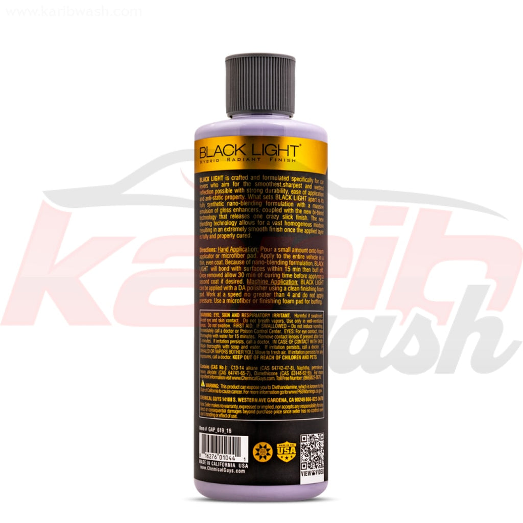 Chemical Guys Black Light a été spécialement développé pour les propriétaires de voitures foncées qui visent une brillance inégalée ainsi qu'une carrosserie lisse et un beau look dit "mouillé" ou "wet".