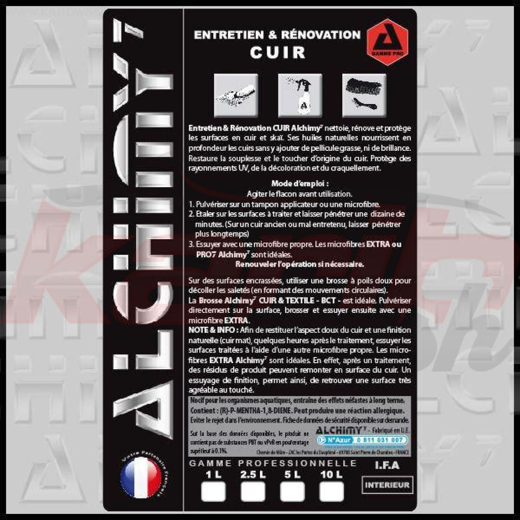 Entretien & Rénovation Cuir Alchimy nettoie, rénove et protège les surfaces en cuir et skaï. Ses huiles naturelles nourrissent en profondeur les cuirs sans y ajouter de pellicule grasse, ni de brillance.