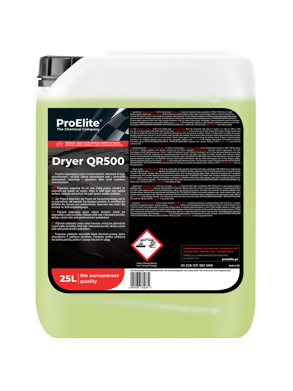 Dryer QR500 est un cire pour voiture avec une formule avancée destinée au séchage de la carrosserie.