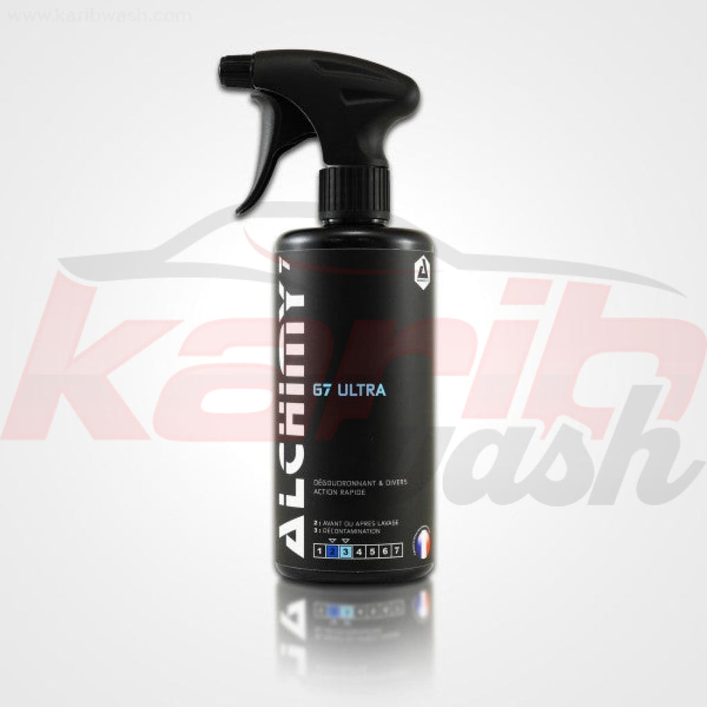 G7 Ultra est un nettoyant puissant dans la gamme Elite de la célèbre marque française Alchimy7. Il vous permettra de dégraisser et de retirer les résidus de goudrons, résines et autres contaminants sur vos supports tels que la carrosserie, les jantes, les échappements ou encore les vitres.