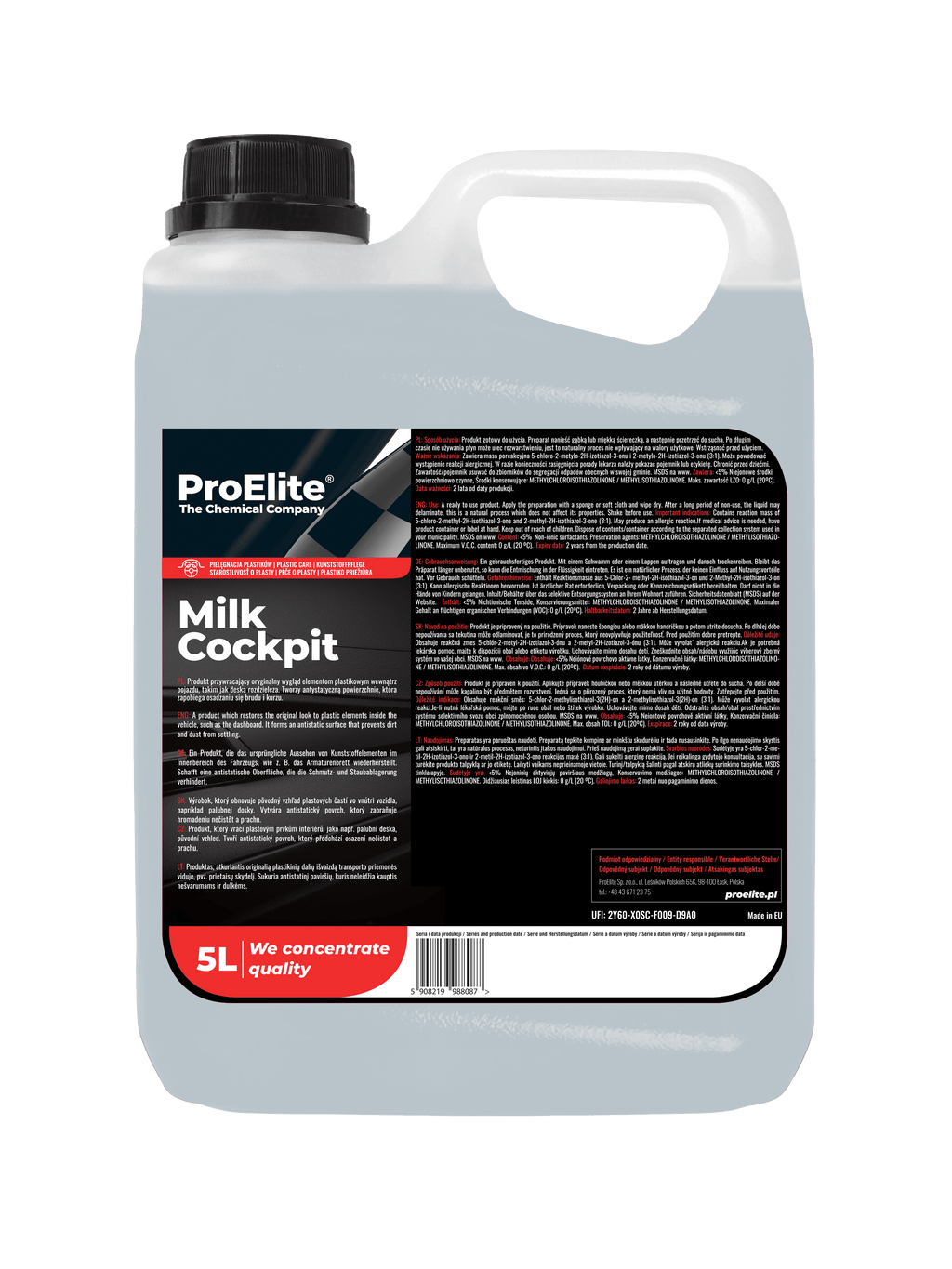 Milk Cockpit a des propriétés antistatiques grâce auxquelles la saleté et la poussière ne s'accumulent pas pendant longtemps. De plus, il donne une odeur agréable qui dure plusieurs jours après son application.