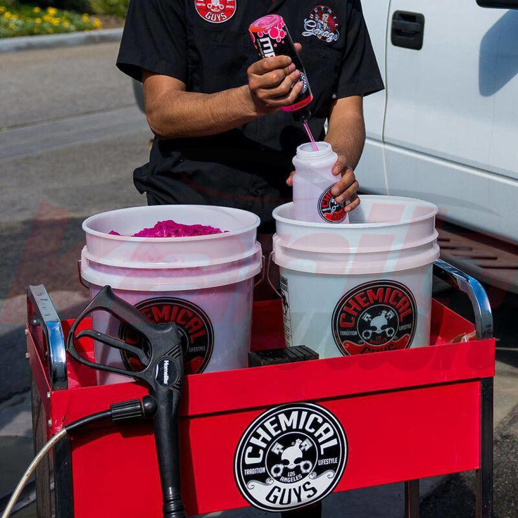 Mr. Pink est un shampoing au parfum de bonbon de la célèbre marque américaine Chemical Guys qui est aussi efficace au lavage traditionnel qu'à l'aide d'un canon à mousse.