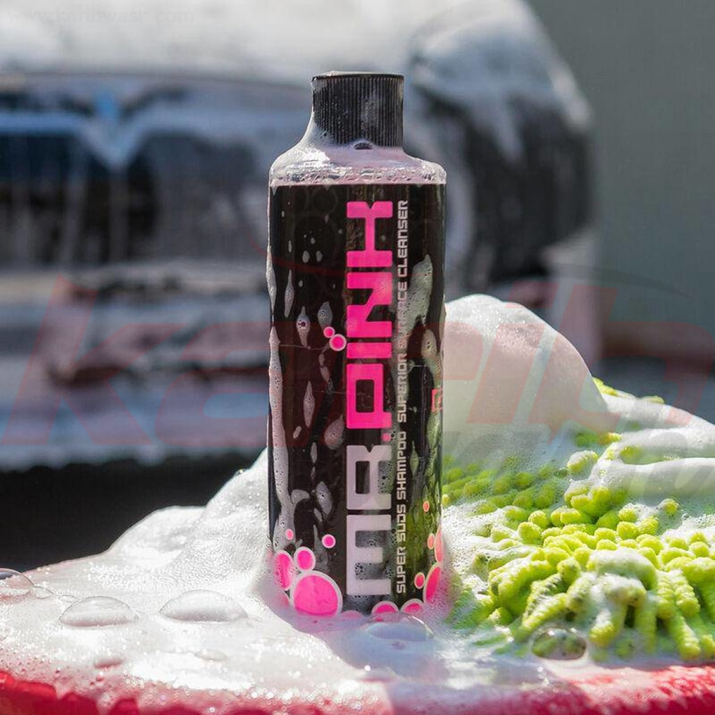Mr. Pink est un shampoing doux au pH neutre offrant d'étonnants résultats ainsi qu'une mousse impressionnante permettant d'éliminer la saleté tout en minimisant l'apparition de tourbillons et rayures.