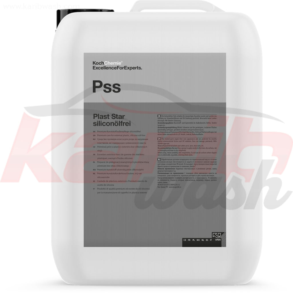 Plast Star de la marque KochChemie est un dressing plastique sans silicone pour plastiques extérieurs, pneus et joints avec une finition satinée et à la durabilité excellente.