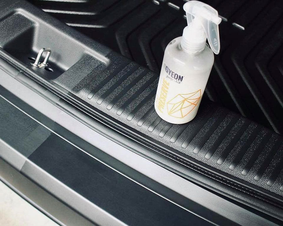 1. Nettoyer les plastiques à l'aide du Q2M Vinyl Cleaner de Gyeon, par exemple.